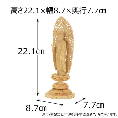 - 仏像 浄土 カヤ 丸台 金粉紋様 3.5寸